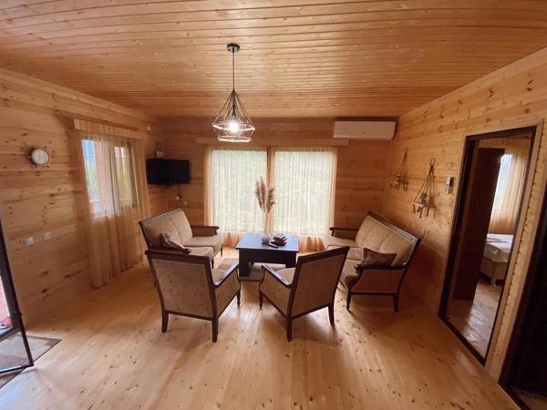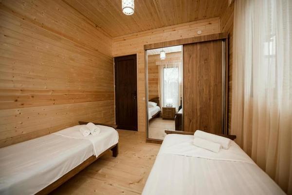 Трёхкомнатный ЭкоКоттедж со всеми удобствами - две спальни, одна гостиная с кухней, один санузел. Свободно можно расположить до 5 персон. Ест; вся необходимая для приятного отдыха бытовая техника и мебель, постельное бельё и посуда, минимальная бронь от 5 суток.